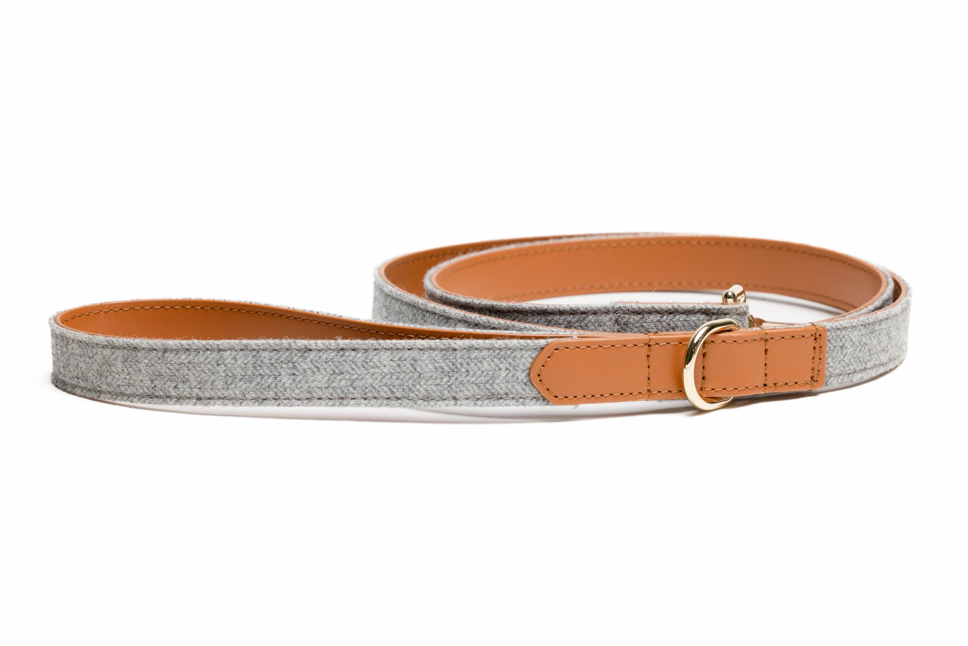 The Milo Leash offers the perfect combination of classic and contemporary. With a stylish grey tweed material and brown leather accents, this leash also features a durable D ring for hanging accessories. Its classic design makes it the perfect accessory for your daily dog walks.